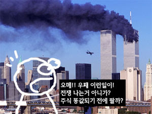 Àá½Ã °è»êÇÑ ¹ø ÇØº¼±î¿ä? ÁÖ´ç 10,000¿øÂ¥¸® ÁÖ½ÄÀÌ 911Å×·¯·Î »ç¶÷µé »çÀÌ¿¡ °øÆ÷°¨ÀÌ Á¶¼ºµÇ¼ ³Êµµ³ªµµ ÆÈ±â½ÃÀÛ, ÁÖ´ç 5,000¿ø±îÁö ¶³¾îÁ³½À´Ï´Ù. ±×·±µ¥ ºÎÀÚÀÎ ½ö±º³à¼®Àº 5,000¿ø Â¥¸® 10¸¸ÁÖ¸¦ »ð´Ï´Ù. ±×·³ ÃÑ °¡°ÝÀÌ 5¾ï¿ø ÀÔ´Ï´Ù. Á¤»óÁÖ½ÄÀ̶ó¸é 10¾ï¿øÀ» ÁÖ°í »ì ÁÖ½ÄÀ» 5¾ï¿øÀ» ÇÒÀι޾Ƽ »ê ¼ÀÀ̳׿ä. ±×¸®°í ºÒ°ú ÀÏÁÖÀÏ ÈÄ ÁÖ½ÄÀÇ °¡°ÝÀº ¿ø·¡´ë·Î ȸº¹µÇ°í, °Å±â¼ µÎ¹è°¡ ¶Ù¾úÀ¸´Ï Ãʱâ Á¤»ó°¡ 10,000 x 2 = 20,000 ÁÖ´ç 2¸¸¿øÀÌ µÈ°ÍÀÔ´Ï´Ù. ÀÌ·¸°Ô µÇ¸é ½ö±ºÀÌ 5¾ï¿ø¿¡ »ê ÁÖ½ÄÀÇ °¡Ä¡°¡ Àڱ׸¶Ä¡ 20¾ïÀÌ µÇ¾î¹ö·È³×¿ä. 4¹è³ª »½Æ¢±â µÇ¾ú½À´Ï´Ù.